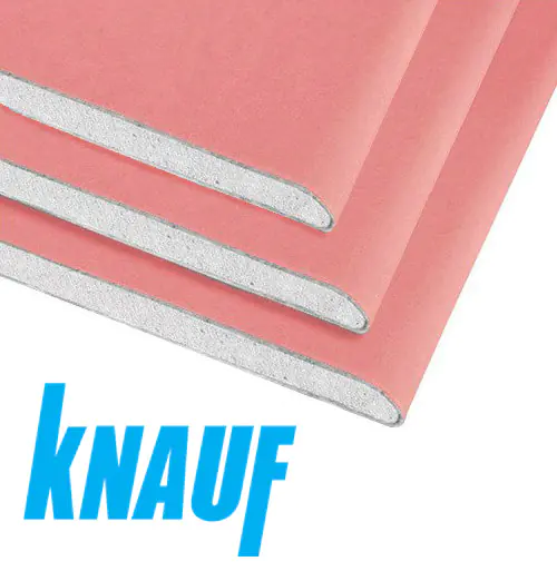 Огнестойкий, армированный стекловолокном гипсокартон. Розового цвета. Его рекомендуют использовать для отделки складских, промышленных и прочих помещений, где существует вероятность возникновения пожара. Масса 1-ого листа 33 кг.