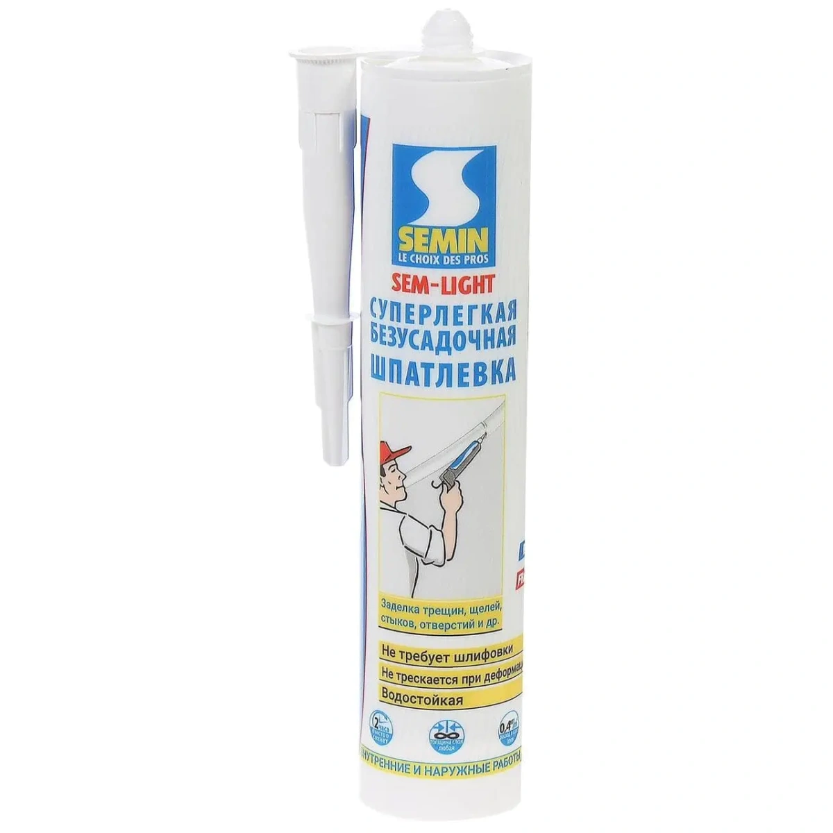 Шпатлевка сверхлегкая безусадочная Semin в тубе – это состав с особыми свойствами, который используется для заделки щелей и отверстий, маскировки стыков, трещин на стенах и потолке. Смесь подойдет и для внутренних, и для внешних работ. Имеет пастообразную консистенцию, образует гладкое белое матовое покрытие. Не трескается, не скалывается, не требует шлифовки. Для использования с пистолетом для герметика. Объем тубы 310 мл. Производитель Франция.