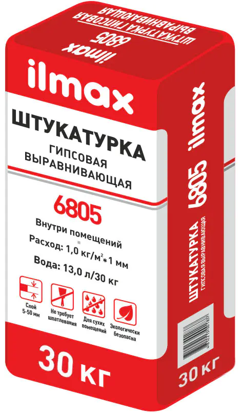Штукатурка ilmax 6805 применяется для внутренних штукатурных работ в сухих помещениях по минеральным поверхностям с их последующей отделкой. Можно наносить в несколько слоев. ilmax 6805 обеспечивает гладкую поверхность, которая не нуждается в дополнительном шпаклевании. Гипсовая штукатурка ilmax 6805 создает благоприятный микроклимат в помещении. Она производится из экологически чистых природных материалов, не содержит вредных для здоровья веществ. Производитель РБ.